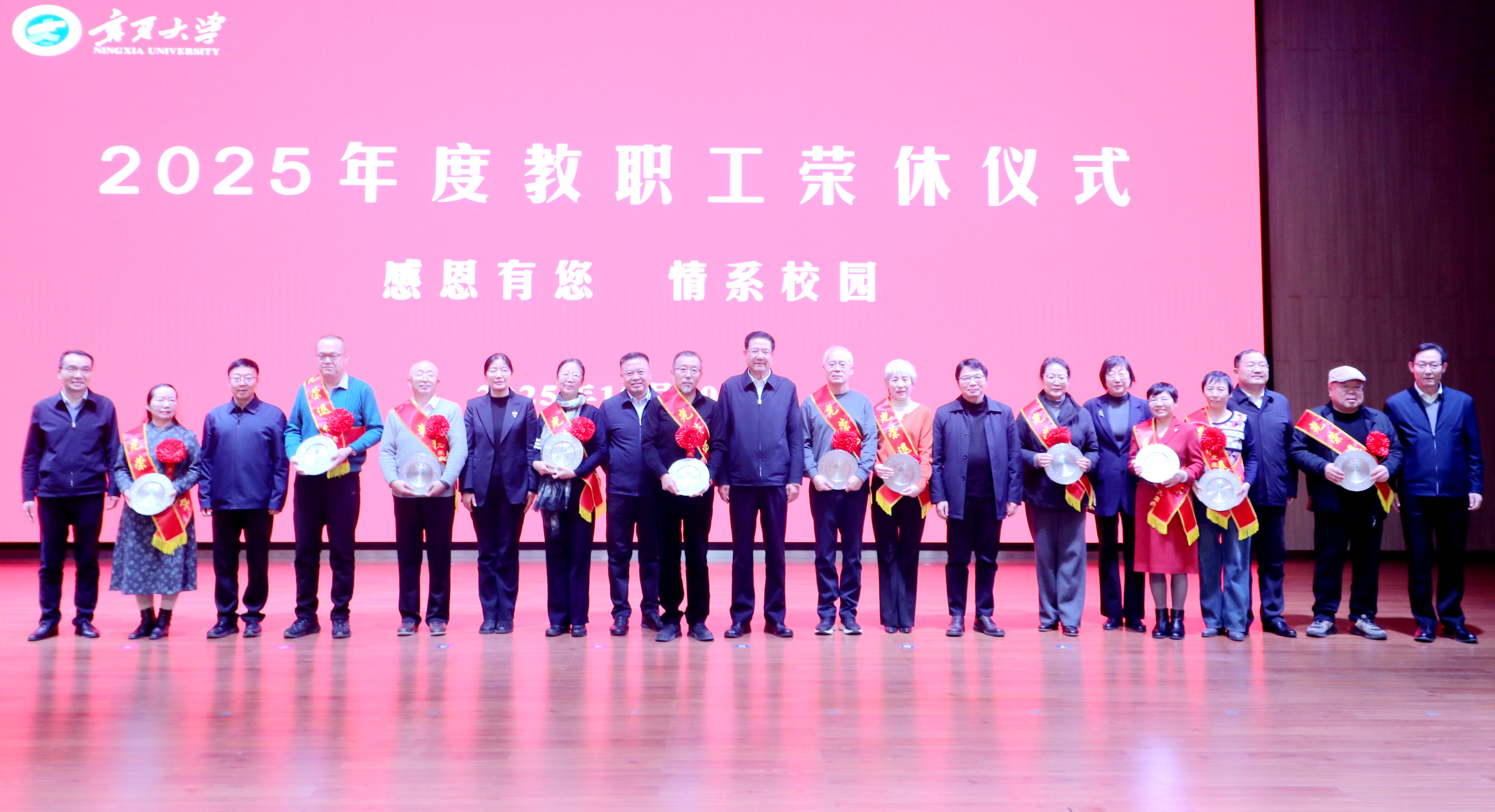 【宁夏大学新闻中心讯 张景/文、图】薪火相传守初心,砥砺奋进启新程。12月30日,我校在贺兰山校区笃行楼三楼报告厅举行2025年度教职工荣休仪式并召开学校事业发展情况通报暨“十五五”规划编制征求意见座谈会。全体校领导、党外人士代表、老同志代表、2025年度荣休教职工代表及相关部门负责人共100余人齐聚一堂,共忆执教岁月,共话学校发展,共绘未来蓝图。