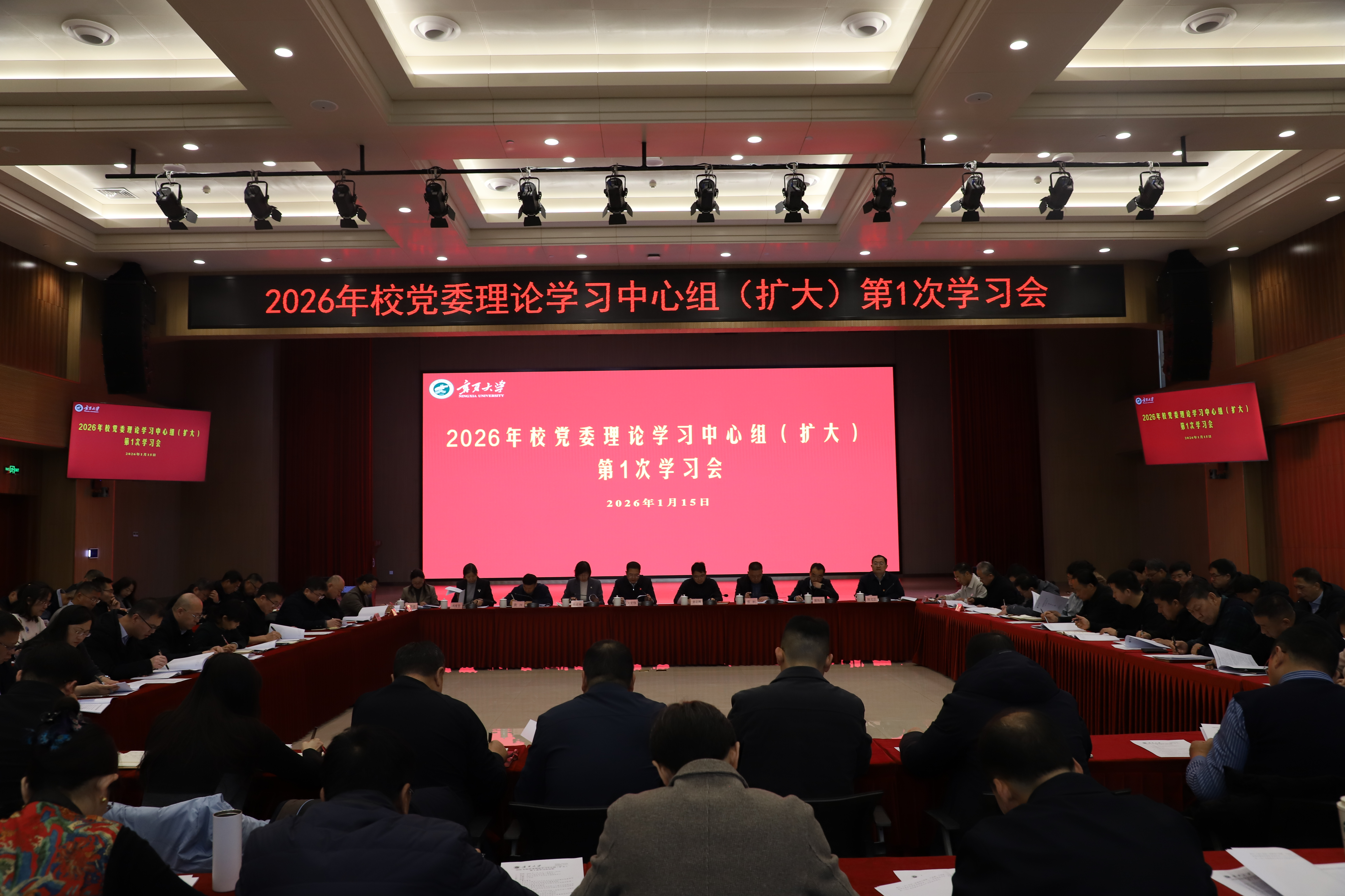 【宁夏大学新闻中心讯 王文娣/文、图】1月15日,2026年校党委理论学习中心组(扩大)第1次学习会在笃行楼3楼报告厅召开,校党委书记王宏伟主持会议。