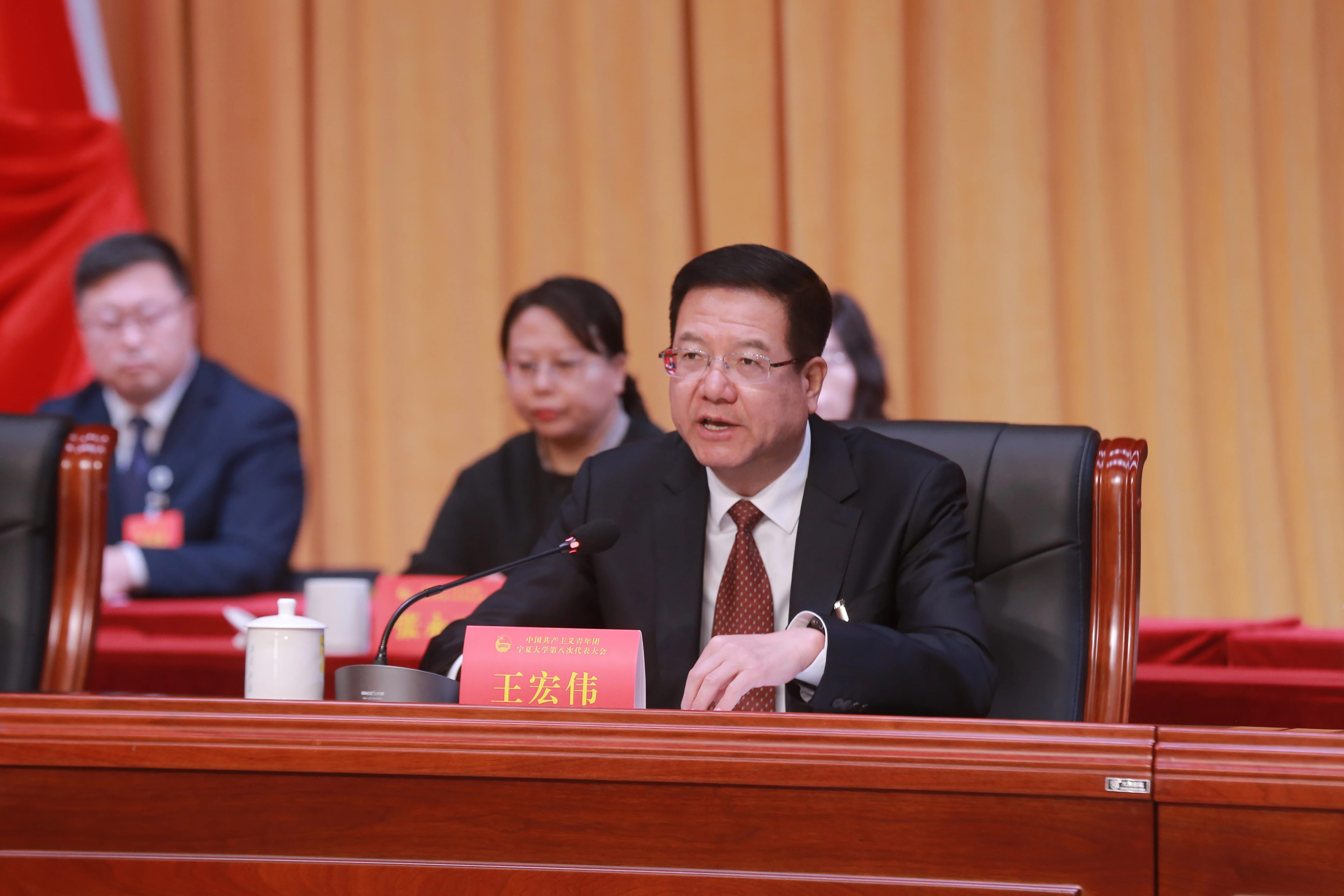 王宏伟代表宁夏大学党委向大会的胜利召开表示热烈祝贺,高度肯定学校各级团组织取得的丰硕成果。他结合学校聚力“双一流” 建设、加快内涵式发展的攻坚实际,向全校各级团组织和广大团员青年提出四点希望:坚持为党育人,筑牢思想根基,始终把准正确政治方向;主动服务大局,勇于挺膺担当,彰显青春使命作为;夯实组织基础,深化改革创新,建强青年战斗堡垒;心系广大青年,强化协同保障,凝聚育人强大合力。勉励青年学子以青春之智、奋斗之汗书写无愧于时代和母校的青春答卷。