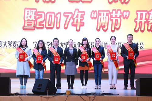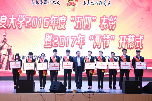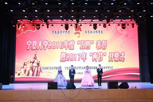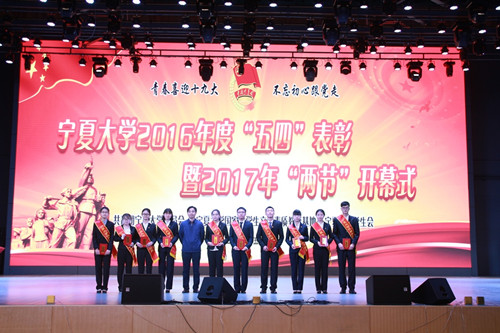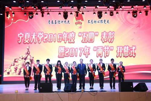 【宁夏大学新闻中心讯 团委】5月3日晚,宁夏大学2016年度“五四”表彰暨2017年“两节”开幕式在文萃校区大学生活动中心隆重举行。校党委副书记王宏伟,副校长马宗保,自治区团委学校部部长周立梅以及校团委、科技处、学生处、研究生院、大学生素质教育基地相关部门负责人,各学院党委副书记、团委书记、学生代表4000余人参加了本次活动。