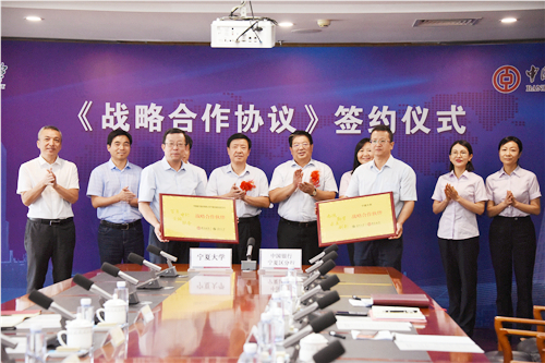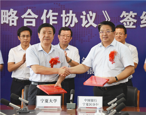 【宁夏大学新闻中心讯 李瑾/文 龚旭峰/图】8月18日,我校与中国银行宁夏分行举行战略合作协议签订仪式。校长何建国、中国银行宁夏分行行长王仁堂出席并代表双方签署协议。