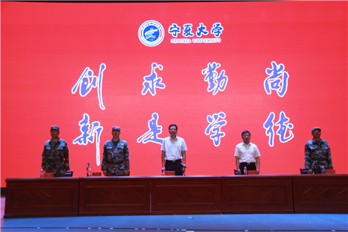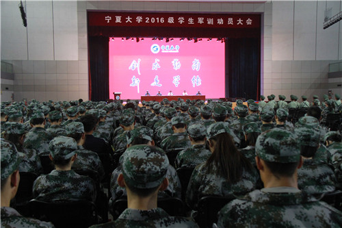 【宁夏大学新闻中心讯 胡玥/文 龚旭峰/图】8月24日,我校2016级学生军训动员大会在文萃校区大学生活动中心召开,这标志着2016级本科生军事技能训练正式拉开帷幕。校党委副书记王宏伟、副校长马宗保与各学院副书记、辅导员、2016级新生参加了会议。会议由学生处副处长刘伯川主持。