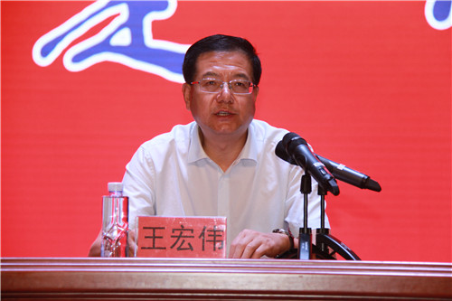 王宏伟作了动员讲话,他指出,我校军训课教学一直走在西北地区高校的前列,被原兰州军区作为大学生军事课教学示范高校,为我国国防后备力量建设做出了积极的贡献。2016级新生即将在军训场上挥洒汗水,接受一个预备役军人的洗礼。他向参训教师和同学提出要求,一是要提高认识,担当责任,锻炼自己。对大学生进行军事课教学,是法律赋予我们的基本权利与义务,是加强我国国防力量建设的需要是推进素质教育、提高学生综合素质的需要;二是要严格要求,积极参与,共同受益。要以部队条例为依据,按照“严格要求、严格训练、严格管理”的“三严”要求,保质保量完成军训任务;三是要科学施训,认真总结,再创佳绩。相关部门要做好安全保卫及宣传思想工作。