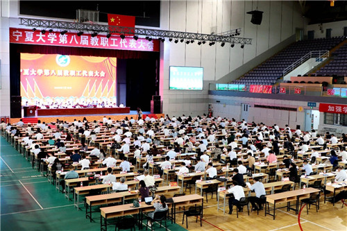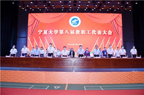 上午9时,在庄严的中华人民共和国国歌声中,宁夏大学第八届教职工代表大会正式开幕。本次大会是在中国特色社会主义进入新时代、全面建成小康社会进入决胜阶段、“十三五”进入收官之年、学校进入新发展阶段,疫情防控取得阶段性成果的重要时刻召开的一次重要会议。