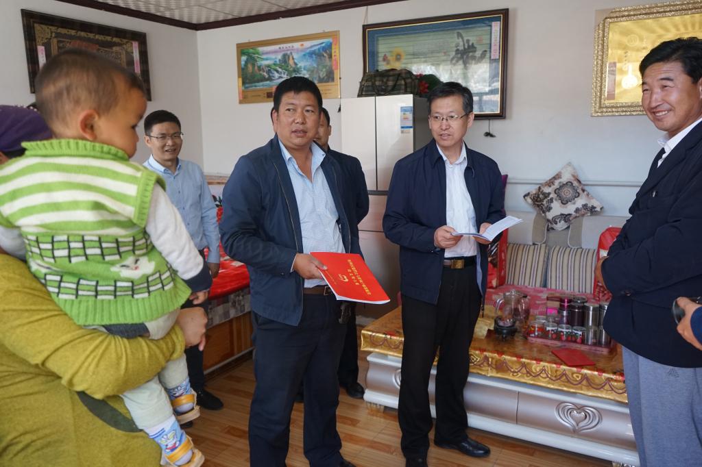 赵利宁一行看望了学校驻村工作队员,深入对口扶贫点,对扶贫工作、村级特色产业发展、农村电子商务及农户收入等情况进行了综合调研。先后实地察看了三和村、冯洼村、石羊村、利民村等地的精准扶贫工作情况;分别在三和村、冯洼村与驻村干部、村两委班子、村民代表进行了座谈交流;有针对性地走访了困难户,详细了解农户的生产生活以及经济收入情况;在利民村冷凉蔬菜种植大棚和富民良种肉牛繁育基地,考察了符合当地贫困村产业发展模式的富国养牛专业合作社、富源肉牛养殖专业合作社,并为扶贫对口村新成立的特色养殖专业合作社揭牌。