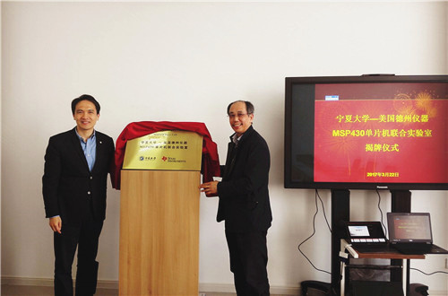 【宁夏大学新闻中心讯 信息工程学院】3月22日下午,宁夏大学—美国德州仪器(TI)MSP430单片机联合实验室揭牌正式揭牌,标志着实验室的建设和运营工作全面启动。马应虎副校长参加了揭牌仪式。