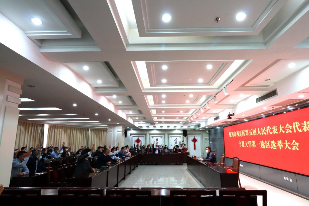 上午9时,选举工作正式开始。大会主会场设在贺兰山校区德勤楼6楼会议室,选举共设3个选区,贺兰山校区、怀远校区、附属中学为第一选区,文萃校区为第二选区,新华学院为第三选区。大会以举手表决的方式在主会场通过了《西夏区第五届人民代表大会代表选举办法》,推选产生了选举工作人员,并当场查验票箱、加锁密封。经各投票站清点人数,宁夏大学选区参选选民人数符合法定人数,可以进行选举。