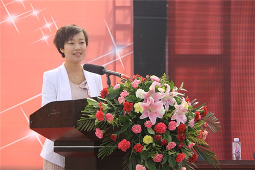 2016级新生代表杨娜发言,倡议同学们在大学里要发扬“女排精神”,积极向上,顽强拼搏。