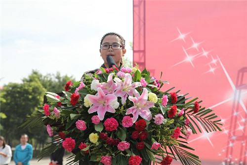 文法外语系教师刘潇靖代表全体教职工发言并分享体会:一是用真诚的心,拥抱彼此;二是用拼搏的脚步,描绘生活;三是用执着的劲,走向目标;四是用凝望的眼睛,相信自己。