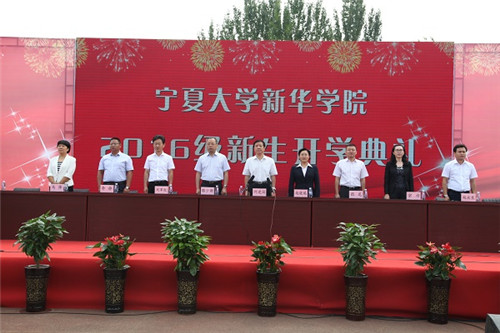 【宁夏大学新闻中心讯 新华学院党委工作部】8月28日上午,新华学院2016级新生开学典礼在中心区操场举行。我校校长、新华学院院长何建国,新华学院领导赵晓瑞、郭少新、张龙、刘军红、宗力、李静、赵永生、马萍出席了典礼。新华学院各单位负责人、学院志愿者代表及2016级新生参加了典礼。典礼由党委副书记吕海军主持。