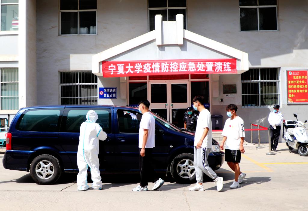 【宁夏大学新闻中心讯 冯禹君/文 张景/图】为进一步做好2021年秋季学期开学学生返校工作,更好地规范和强化新冠肺炎疫情防控、提高防范和应急处置能力,保障疫情防控常态化条件下教育教学工作顺利进行,确保师生的身体健康与生命安全,8月25日下午,我校在文萃校区开展2021年秋季学期开学返校疫情防控应急演练。校领导李星、彭志科、王玉炯、刘炎胜、周震、史金龙出席演练活动。