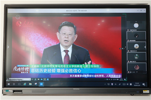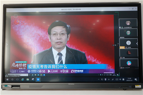 “四位教授的精彩授课,为全国大学生进行了一堂生动的思想政治教育课。让同学们能深刻认识到,党的领导是我们战胜一切困难、危机的根本。坚持制度自信和制度认同是这场危机处理的基础。集中力量办大事,集中精力办小事在这场疫情防控中完美体现。责任意识、担当意识、奉献意识、忧患意识应该是新时代大学生必备的优秀品质。体现着大学生的时代责任、国家责任、世界责任,体现着大学生迎难而上、勇于担当的精神品格。”马克思主义学院院长范映渊说。
