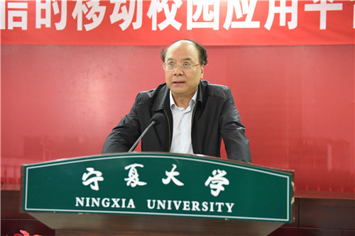 会上,网络管理中心主任高玉琢从校园信息化发展历程、“十二五”校园信息化建设与“十三五”信息化规划框架、宁夏大学基于微信的移动校园应用平台项目建设的主要内容和意义等方面进行了介绍。