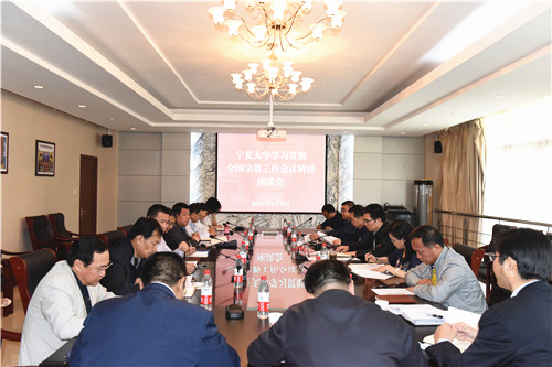 【宁夏大学新闻中心讯 胡玥/文 龚旭峰/图】5月9日,我校在贺兰山校区中国阿拉伯国家研究院会议室召开学习贯彻全国宗教工作会议精神座谈会。校党委书记金能明、副书记赵利宁参加了会议。