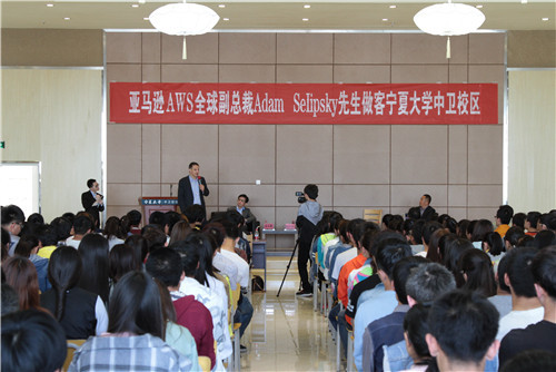 【宁夏大学新闻中心讯 中卫校区】4月27日,亚马逊AWS全球副总裁Adam Selipsky,AWS全球副总裁、中国执行董事荣永康,AWS中国公共事业部总经理王珊等一行6人到访中卫校区,与师生面对面交流。
