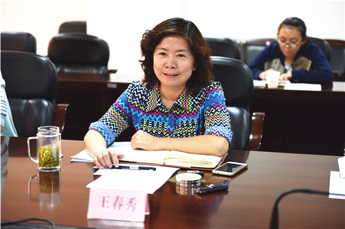 座谈会上,王春秀对宗瑞谦一行的到来表示热烈欢迎,她从学校发展历史、办学规模、学科建设、服务地方等方面介绍了我校基本情况,并重点介绍了我校“红枣自动分级分选机研制”、“黄河河套改良与脱硫废弃物改良盐碱地关键技术研究与示范”等国家科技支撑计划项目在内的科研成果。