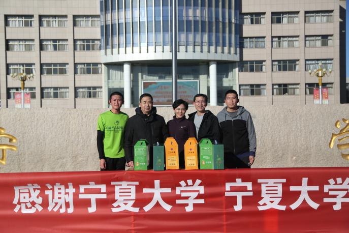 此次长跑活动从宁夏大学怀远校区体育场出发,经过怀远校区宁大湖,绕金波湖一圈,经过天桥、农学院、科技楼……最终到达宁夏大学贺兰山校区的南门口。当然最热闹的属贺兰山校区南门口的领奖处了......“奖品上写的是消费扶贫产品”“这是固原市冯洼村的马铃薯”......一条“消费扶贫 奉献爱心 感谢宁夏大学 宁夏大学工会和各位老师”的横幅和一份与众不同的奖品引起了大家的注意和讨论。