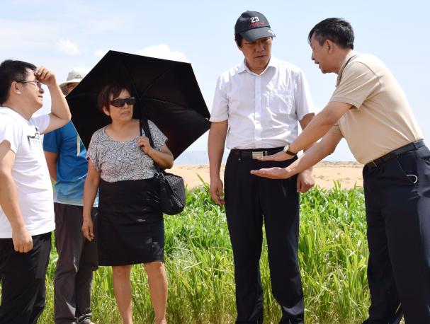 尹应武教授(右一)许兴教授(右二)赵玉芬院士(右三)在项目示范田里
