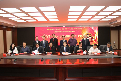 最高人民法院党组成员、副院长,第六巡回法庭分党组书记、庭长指出,第六巡回法庭和巡回区法学院校要增进全面依法治国和法治人才兴国共识,共同肩负起培养法治人才的重任,携手推进依法治国的进程;加强合作,就审判实践、司法改革、“一带一路”法治服务保障等重大课题共同进行深入研究;加强司法实践与法学教育的交流互动,搭建共同进行案例教学、司法大数据分析、专题研讨、教育培训的平台,进一步完善挂职锻炼、教学实习等制度,推动教学科研与司法实践有效对接,共同培养德法兼修的社会主义法治人才队伍;共同加强法治宣传,通过组织开展“巡回法庭公众开放日”、“巡回开庭进校园”等活动,增强群众法治观念、传播法治文化、弘扬法治精神、提升司法权威和公信力。