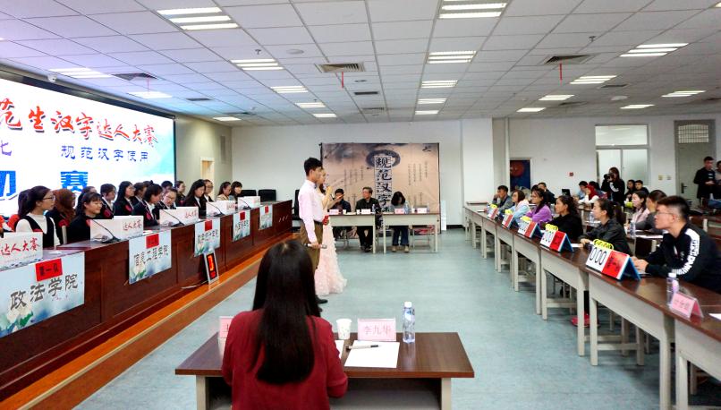 政法学院、人文学院、教育学院、信息工程学院、体育学院等15个设有师范专业(即教师教育专业)学院的70多位师范生分三场,参加了“听写汉字”“选择字音”“经典填字”“提示猜字”四个环节的比赛,使出看家本领,你争我赶,展示了各参赛队员对汉字的字形、字音、字义等方面“功底”。