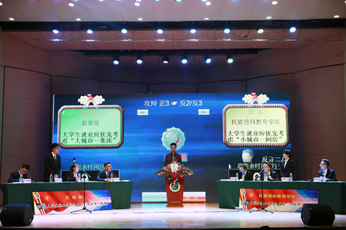 此次大学生辩论赛历时两个月,经过25场激烈角逐,人文学院、中卫校区、农学院、民族预科教育学院一路过关斩将相聚辩论巅峰之夜。决赛中依开篇立论、自由辩论、攻辩小结、总结陈词四个环节展开。季军之辩中,双方辩手围绕大学生就业应优先考虑“大城一张床”和大学生就业应优先考虑“小城一间房”侃侃而谈,就究竟是为理想不懈奋斗还是为生活回归初心展开了激烈辩论。冠亚军之战,双方赛况激烈,行与思的哲学命题之辩点燃了精彩纷呈的赛场,辩手们精彩的论辩更是博得场下观众阵阵掌声。