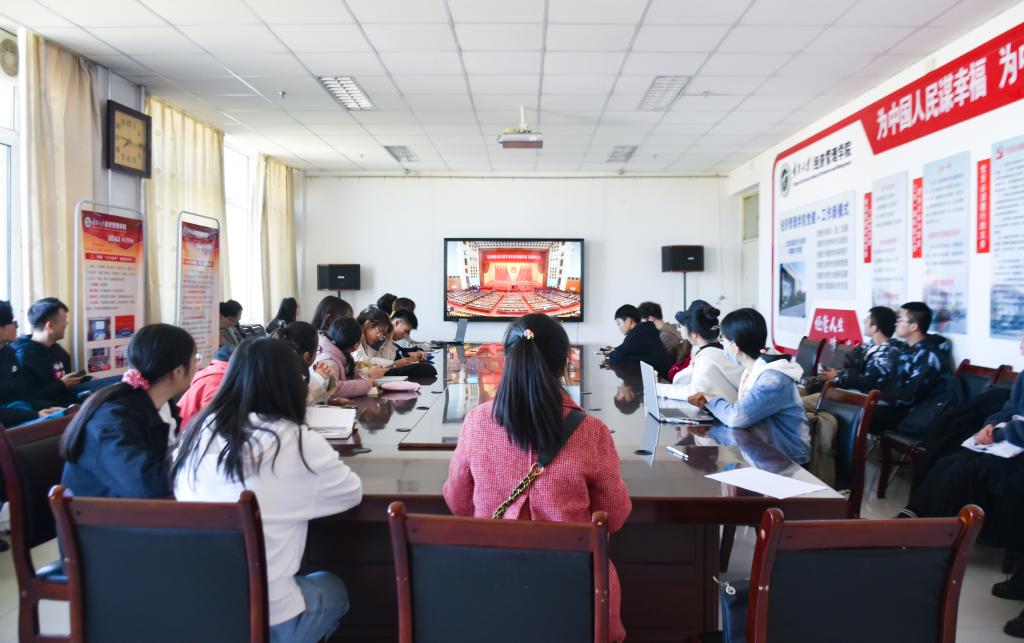 美术学院团委书记王艳梅说:“‘中国人民是惹不得的,如果惹翻了,是不好办的。’听到习近平总书记这样接地气又硬气的话,我们应该更自信、更有力量、更用心的引领和服务青年,让他们成长成才。”