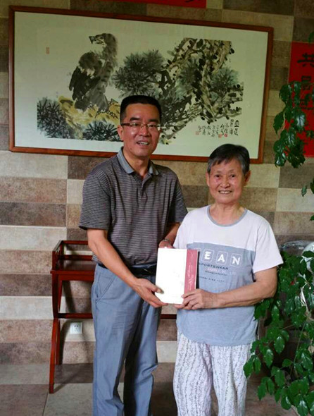 为感谢金能明书记代表宁夏大学亲自登门看望,汤老师向金书记赠送了记载她与吴老感情、生活以及工作回忆录的《执子之手》一书。