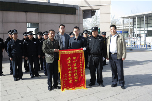 【宁夏大学新闻中心讯 胡玥 实习生 蒲绒绒/文 龚旭峰/图】4月1日,中房物业管理有限公司和北京央务恒远保安服务有限公司进行了工作交接。北京央务恒远保安服务有限公司将正式为我校提供校园安保服务。为表达对中房物业管理有限公司六年来为我校安全稳定工作所做的贡献,我校向中方物业管理有限公司赠送了锦旗。