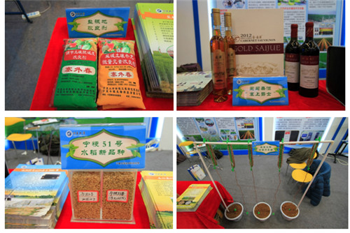 会前,社会服务处通过面向全校征集科研成果,遴选了代表性科技成果“盐碱地改良技术与改良剂、风光互补节水灌溉系统、设施农业关键技术及其配套产品、葡萄高效优质栽培技术与优质典型葡萄酒酿造技术、红枣自动无损检测分级机、硒砂瓜绿色生产集成技术及产品、水稻新品种宁粳51号、牛羊营养舔砖、杏鲍菇菇棚远程监控系统”等9项成果展板和6类实物。