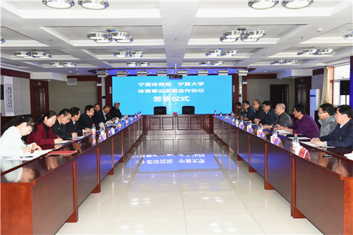 我校体育学院、学生处负责人,宁夏体育局相关处室负责人共同参加签约仪式。