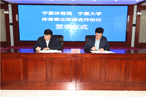 何建国校长和宁夏体育局张柏森局长签署了合作协议,标志着双方将本着“优势互补,互惠互利,共建共享,合作双赢”原则,在我区体育领域开展长期合作。