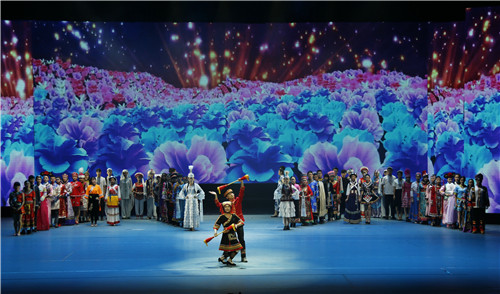 一首《相亲相爱》大合唱拉开了晚会的序幕,师生们精心编排的富有各民族特色的节目令人眼前一亮:饱含着充沛感情的家乡民谣诉说着莘莘学子对远在千里之外亲人的思念;踏着激越鼓点的现代舞令现场气氛瞬间高涨;民族预科教育学院陈静老师带来的《月半小夜曲》独唱展现了我校教师的别样风采;一场别具特色、华美盛大的民族走秀更是令观众连连称赞。晚会在一曲民族大合唱《国家》中完美落幕。