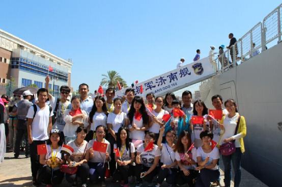 随后,我校师生与参加欢迎仪式的300多名华人华侨先后参观了济南舰、益阳舰和千岛湖舰。同学们在舱内通过电视观看了152舰艇编队护航纪录片,深入了解了我国海军舰艇在亚丁湾和索马里海域的护航情况,也通过近距离的观察,了解了舰队官兵的日常生活。此次活动不仅提高了同学们的国防知识、丰富了访学学生的课余生活、而且加深了同学们的爱国情怀。