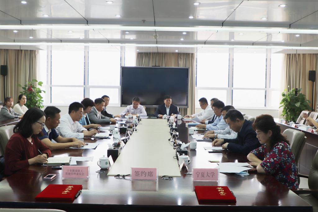【宁夏大学新闻中心讯 李明花/文、图】9月24日,宁夏大学召开与宁东管委会共建中试基地项目入驻签约仪式,校长何建国,宁夏教育厅副厅长王春秀,宁东能源化工基地管理委员会党工委常务副书记、副主任陶少华,宁夏科技厅副厅长、二级巡视员芮建华出席仪式,校党委常委、副校长李建设主持仪式。