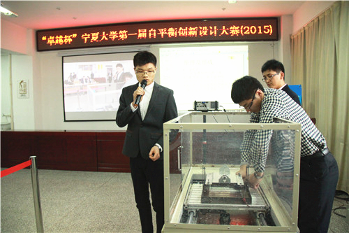 据了解,本届大赛以“随时而动、顺势而为、保持平衡”为主题,通过机构设计和控制算法设计等方式完成平衡装置的制作,平衡装置托举盛水装置在大赛组委会提供的测试平台上做往复平动、摆动时最大限度的避免杯中液体溢出为比赛内容。大赛从初赛、预赛、复赛到决赛历时2个多月,吸引了全校7个学院和中卫校区近150名学生组建的31个团队参加。