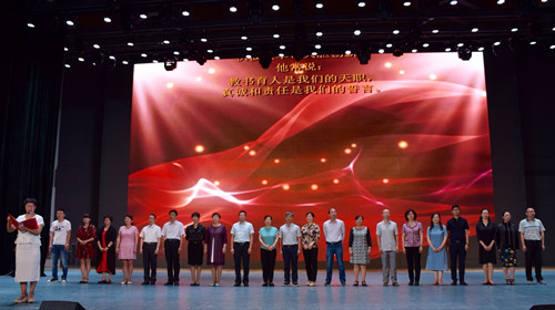 毕业生代表在名为“师魂”的朗诵中,向80位教师代表献花,感谢老师、母校的培养。
