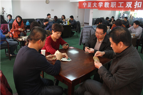【宁夏大学新闻中心讯 工会】为进一步丰富教职工文化生活,促进教职工之间相互交流,由校工会举办的教职工双扣升级比赛于11月28日落幕,经过激烈角逐,体育学院获得一等奖,校长办公室等三个单位获得二等奖,物理电气信息学院等四个单位获得三等奖。