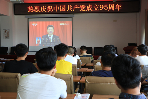 上午十点,学校各单位在不同地点,共同观看中央电视台新闻频道直播的“庆祝中国共产党成立九十五周年大会”实况,欢庆党的九十五华诞。