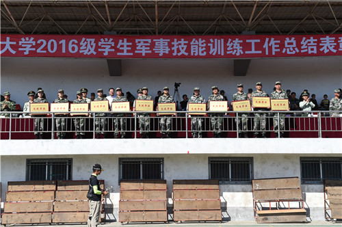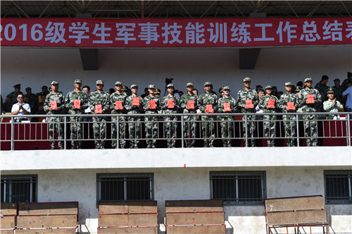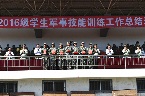校党委副书记王宏伟作了军训工作总结。他指出,通过军训,同学们掌握了军事知识和技能,增强了国防意识,树立了“天下兴亡、匹夫有责”和“国家虽安,忘战必危”的庄严使命感,磨练了意志,增强了体质,强化了组织纪律性,增进了团结和友谊。他希望同学们在今后的学习生活中,一定要不忘初心,继续前进,以人民子弟兵为榜样,以严谨作风为准绳,以振兴中华为己任,珍惜大学时光,不忘父母嘱托,团结勤奋、求实创新、精思励志、开拓进取,努力把自己培养成为德智体美全面发展的社会主义建设者和接班人,肩负起建设保卫祖国的崇高使命。