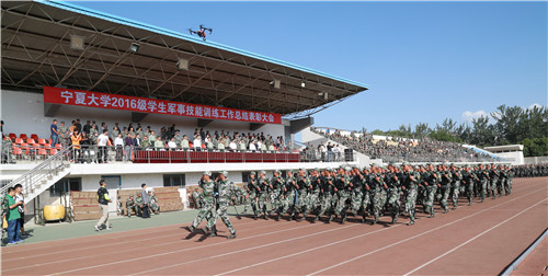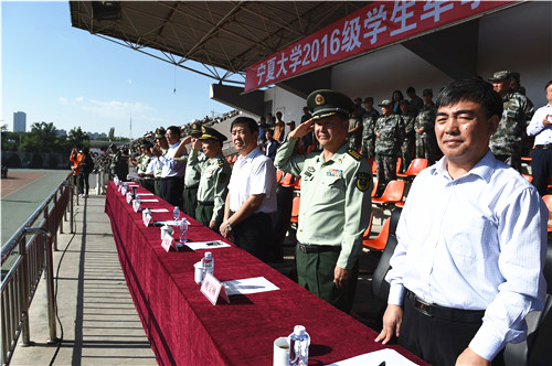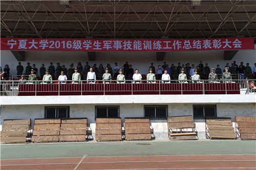 【宁夏大学新闻中心讯 张丽艳 封宏砚/文 龚旭峰 雷慧/图】9月10日上午,艳阳高照,军歌嘹亮。我校2016级学生军事技能训练工作总结表彰大会在怀远校区田径场召开。武警宁夏总队政治委员尚力峰,宁夏武警总队政治部副主任姚宝林,宁夏军区副参谋长安进瑜,校领导何建国、王宏伟、马宗保,武警宁夏总队秘群处处长拓守升、干部处处长高润,宁夏教育厅马建林处长,武警宁夏总队直属支队支队长张爱斌、副政委瞿宏、一大队大队长曹树益出席了总结表彰大会,会议由副校长马宗保主持。