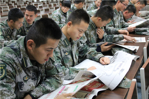 【宁夏大学新闻中心讯 国防生记者站】为响应校团委“学习十八大精神,认识五大发展理念”之“四进四信”主题团日活动号召,切实推进习主席“四进四信”讲话精神植根国防生团员群体。近期,在国防生直属团委组织下,国防生团员分连队在文萃校区图书馆二楼国防生之家和国防生公寓楼各连部开展了“学习十八大精神,坚定共产主义信仰”的学习讨论活动,国防生专职辅导员参加了学习并就重点难点作以精彩讲解。