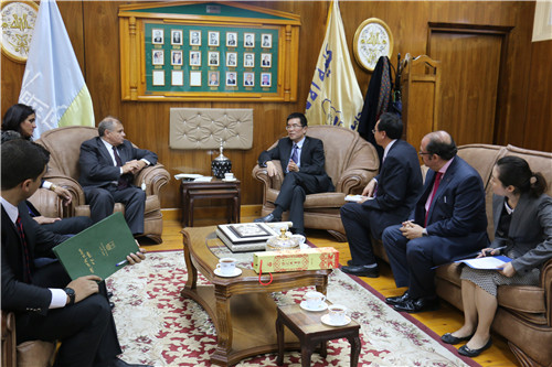 随后,学校代表团先后访问了了亚历山大大学、苏伊士运河大学、哈桑一世大学。两国三校的相关负责人接见了我校代表团。双方校领导分别介绍了各自大学的情况,并就双方加强中埃文化教育、中国与摩洛哥文化交流,就中国“一带一路”倡议、丝路宁夏战略支点,推动双方优势学科学术合作、教授互动、学生互访、研究生教育、专业+语言、语言+专业等议题深入交换了意见。哈桑一世大学还提请我校协助哈桑一世大学建立摩洛哥第三所孔子学院。