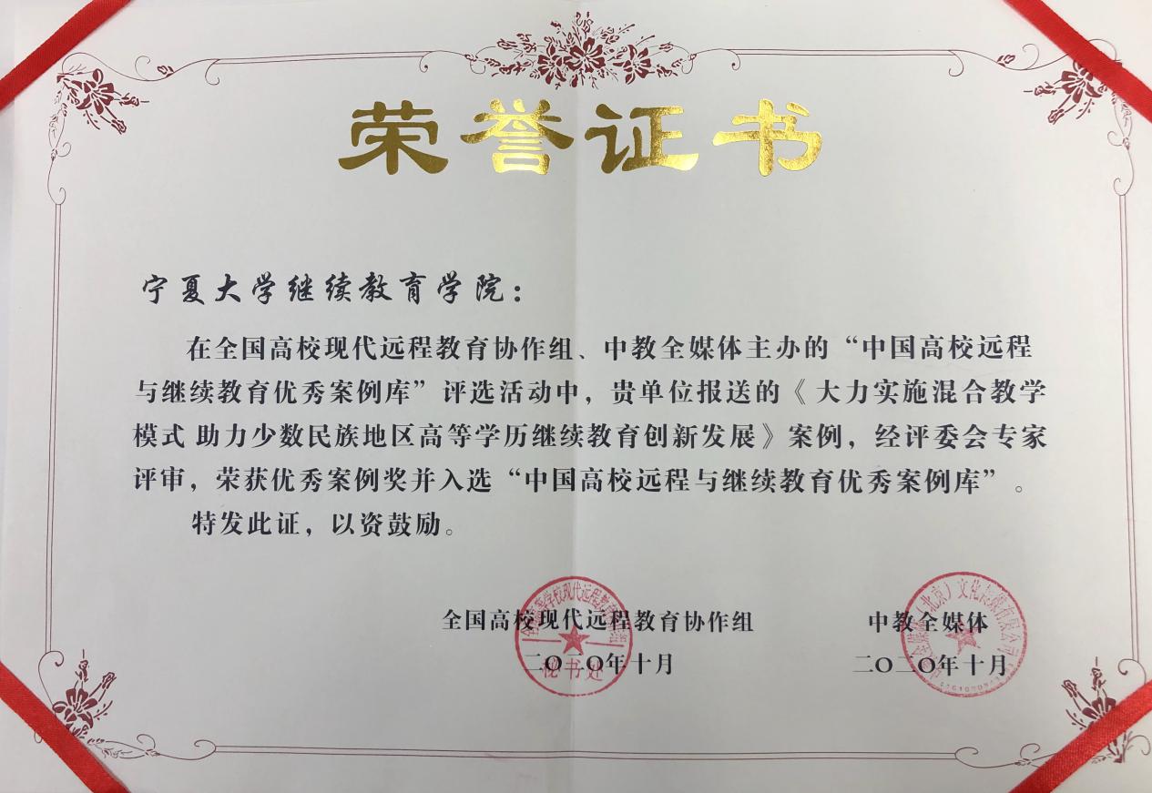 【宁夏大学新闻中心讯继续教育学院】近日,2020中国国际远程与继续教育大会在北京召开,我校继续教育学院荣获“2020中国高校远程与继续教育优秀案例奖”。