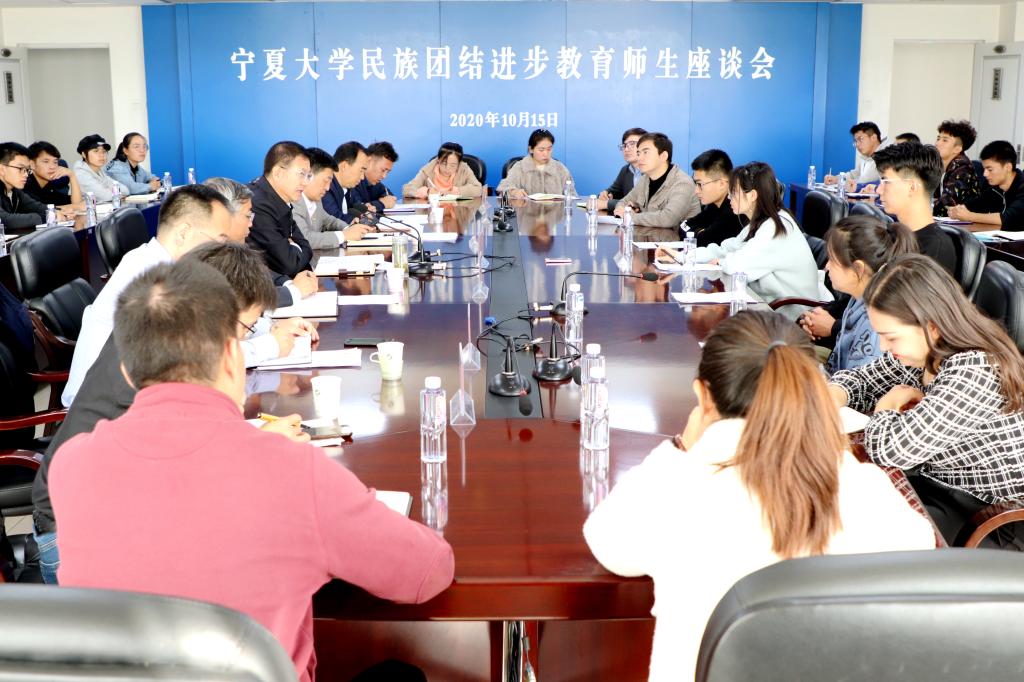 【宁夏大学新闻中心讯 张景/文、图】为深入学习贯彻习近平总书记关于民族宗教工作重要论述及来宁视察重要讲话精神,贯彻党的民族理论和民族政策,促使全校师生牢固树立马克思主义民族观宗教观,铸牢中华民族共同体意识,10月15日,我校召开民族团结进步教育师生座谈会,校党委副书记王宏伟参加座谈会,学生处处长罗进德主持会议。