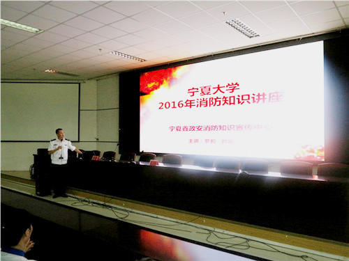【宁夏大学新闻中心讯 保卫处】6月15日下午,校保卫处、综治办主办的消防安全知识培训活动在贺兰山校区文科楼一楼报告厅举行,党群、行政部门、科研、直属单位、各学院负责消防工作的负责人、义务消防员、学生代表共计400余人参加了此次培训。保卫处张启明副处长主持培训。
