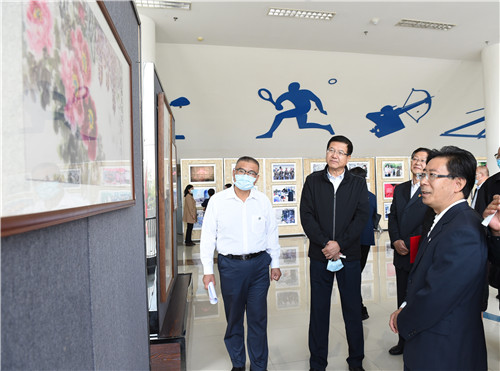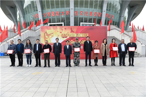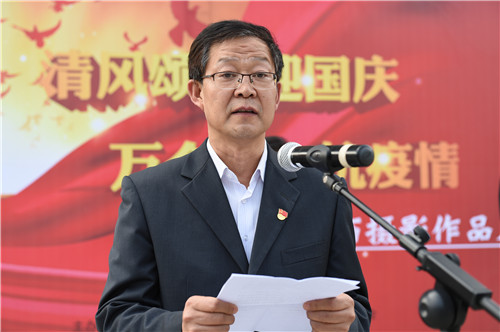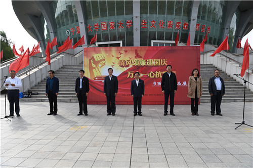 【宁夏大学新闻中心讯 龚旭峰 文/图】9月29日,由校纪委、工会共同主办的“清风颂廉迎国庆 万众一心抗疫情”书画摄影作品展在文萃校区大学生活动中心举行开幕式。校党委书记李星、党委副书记王宏伟、纪委书记周运生出席开幕式。各单位党政主要负责人、全体获奖人员和部分师生代表参加了开幕式。工会主席孙建军主持仪式。