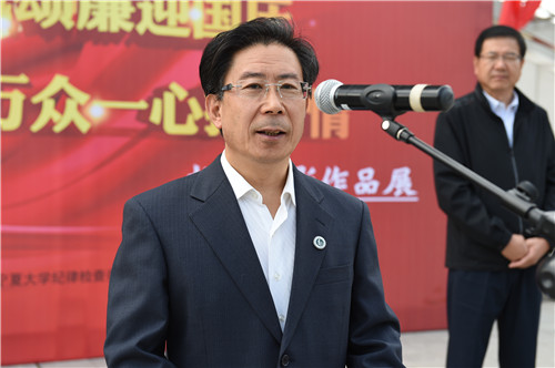 李星宣布宁夏大学2020年“清风颂廉迎国庆 万众一心抗疫情”书画摄影作品展开幕。