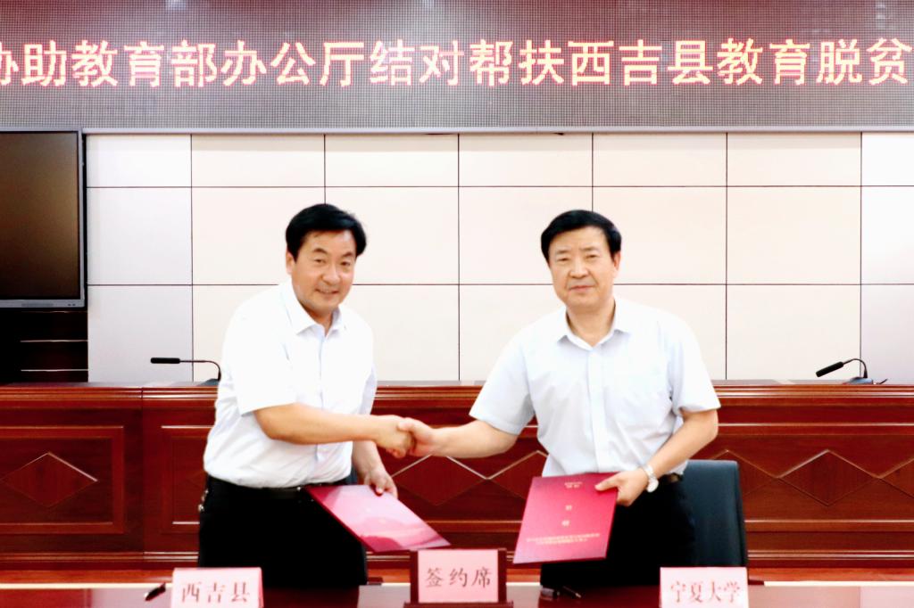 7月22日,宁夏大学协助教育部办公厅结对帮扶西吉县教育脱贫攻坚工作签约仪式在西吉县会议中心举行。西吉县委副书记、政法委书记杨生智主持本次签约仪式。