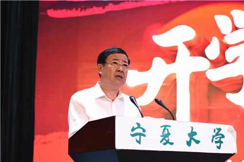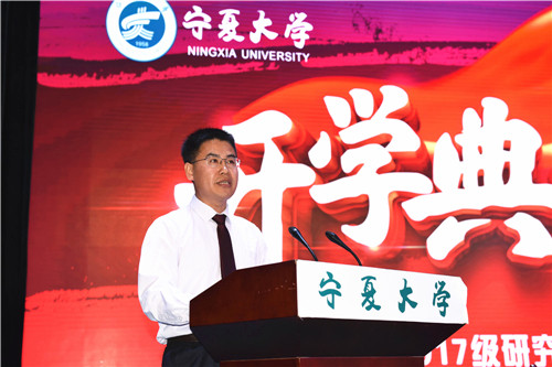 王宏伟介绍了我校2017级研究生招生的情况。他指出,经过59年的发展,宁夏大学已经站在了新的起点上,并且正在奋力推进“双一流”建设。他鼓励新生们争当专业学习的表率,科研创新的表率,优良校风的表率,健全人格的表率,遵纪守法的表率,主动当好促进我校建设发展的建设者、推动者和实践者。