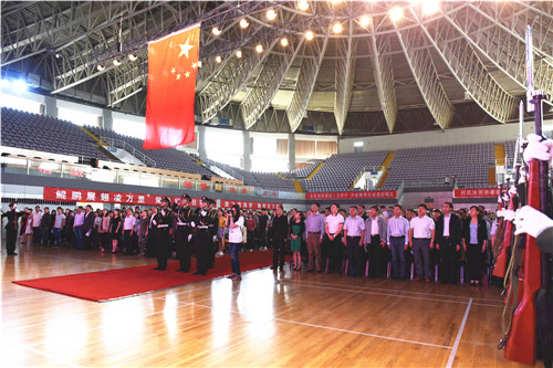在雄壮威严的国歌声中,典礼拉开序幕。